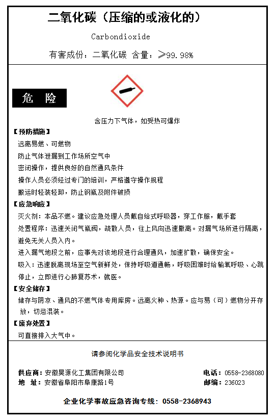 產品名稱:二氧化碳 版本:HY-SDS-2014