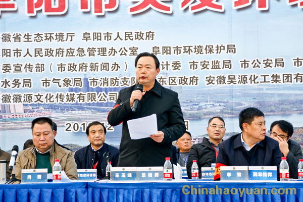 本次演練由安徽省生態(tài)環(huán)境廳、阜陽市人民政府主辦,市政府應(yīng)急辦、市環(huán)境保護局承辦,市委宣傳部、市政府新聞辦、市衛(wèi)計委、市安監(jiān)局、市公安局、市民政局、市水務(wù)局、市氣象局、阜陽消防支隊、潁東區(qū)政府、昊源化工等協(xié)辦。以上單位相關(guān)領(lǐng)導(dǎo)、安徽省其它縣市環(huán)境負責(zé)人、昊源化工部分員工現(xiàn)場觀摩演練。