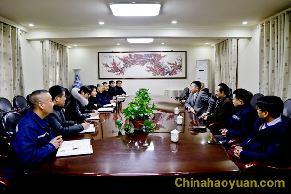 凡殿才向青島科技大學(xué)化工學(xué)院客人介紹了昊源公司發(fā)展歷程,公司目前生產(chǎn)、經(jīng)營情況及發(fā)展規(guī)劃。在聽取青島科技大學(xué)化工學(xué)院客人關(guān)于該院學(xué)科研究介紹后,希望雙方進(jìn)一步深入交流,在化工新產(chǎn)品方面開展校企合作,實(shí)現(xiàn)互利共贏。