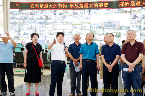7月9日,原阜陽市、縣離退休老干部張開俊、馬建民一行19人到昊源公司參觀指導,公司黨委書記、董事長凡殿才,副總經理高玉磊等陪同參觀。