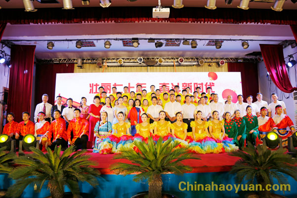 晚會(huì)結(jié)束,公司領(lǐng)導(dǎo)依次走上舞臺(tái),向演員們表示問(wèn)候,并與演員合影。