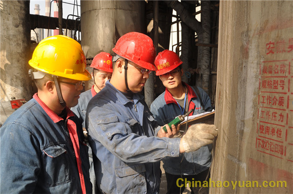 圖為動力處和阜陽市特種設備監(jiān)督檢驗中心有關人員對設備進行檢測。