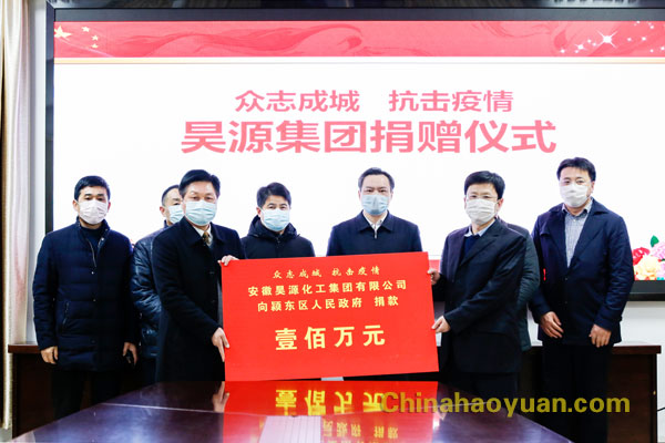 2月1日,昊源集團(tuán)黨委書記、董事長(zhǎng)凡殿才代表安徽昊源化工集團(tuán)有限公司向潁東區(qū)人民政府捐款100萬元,用于新型冠狀病毒感染的肺炎疫情防治。潁東區(qū)政府區(qū)長(zhǎng)張銀軍、副區(qū)長(zhǎng)顧中偉,昊源集團(tuán)副總經(jīng)理高玉磊,工會(huì)副主席戚偉、財(cái)務(wù)處長(zhǎng)侯繼文出席捐贈(zèng)活動(dòng)。