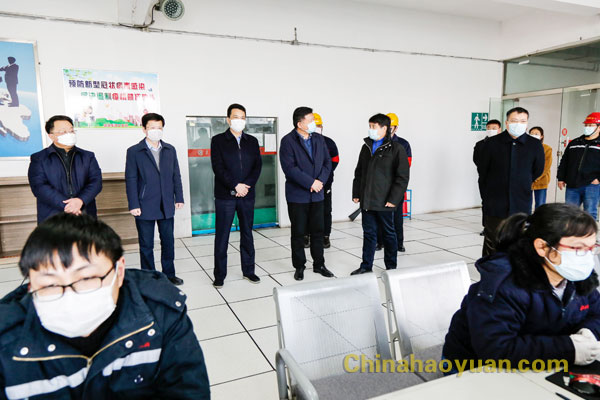 張海閣一行來到昊源園區(qū)食堂、生產(chǎn)控制中心、昊源本部航天爐主控室,認(rèn)真查看、詢問公司疫情防控情況。