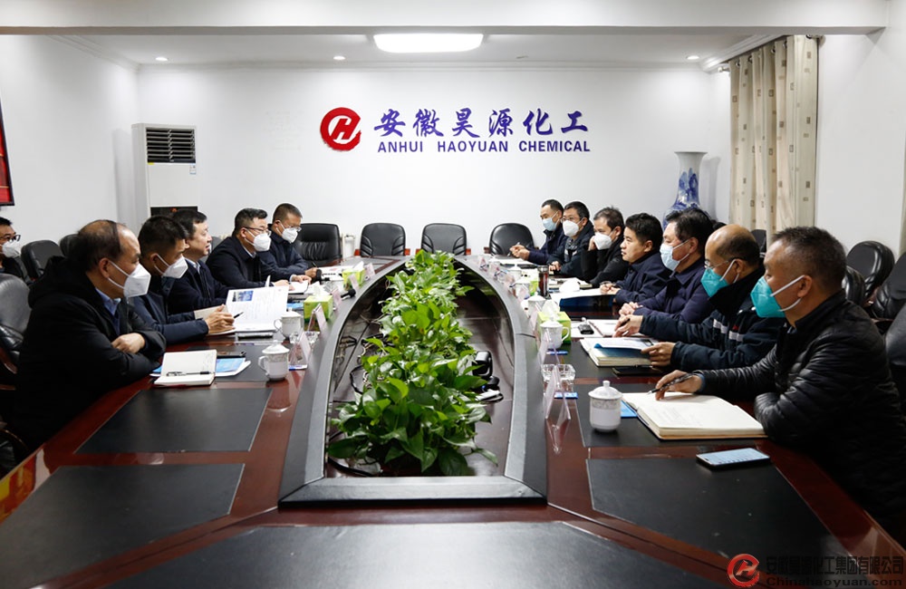 在昊源老廠區(qū)會議室,凡殿才向申瑞屏一行匯報了公司生產經營、產品產能及發(fā)展規(guī)劃情況。昊源公司積極貫徹新發(fā)展理念,以數(shù)字化、信息化、智能化創(chuàng)新經營與管理模式,統(tǒng)籌推進企業(yè)綠色低碳高質量轉型發(fā)展。園區(qū)一期、二期全部項目、三期部分項目已建成運行,實現(xiàn)達產達標。三期在建項目將于2023年10月全部建成投運,四期項目也在有序推進中。按照穩(wěn)肥擴化發(fā)展戰(zhàn)略,四期項目全部建成投運后,將進一步延伸和優(yōu)化升級產品鏈,提升盈利能力,向高新技術、高附加值的化工新材料、高端化學品、精細化工品方向發(fā)展,提高公司市場競爭力。