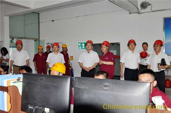 姚啟才一行在公司副總經(jīng)理高玉磊、高明林、張海生,總經(jīng)理助理潘家成等領(lǐng)導(dǎo)陪同下,首先來(lái)到航天爐系統(tǒng)總控室,進(jìn)行實(shí)地參觀考察。