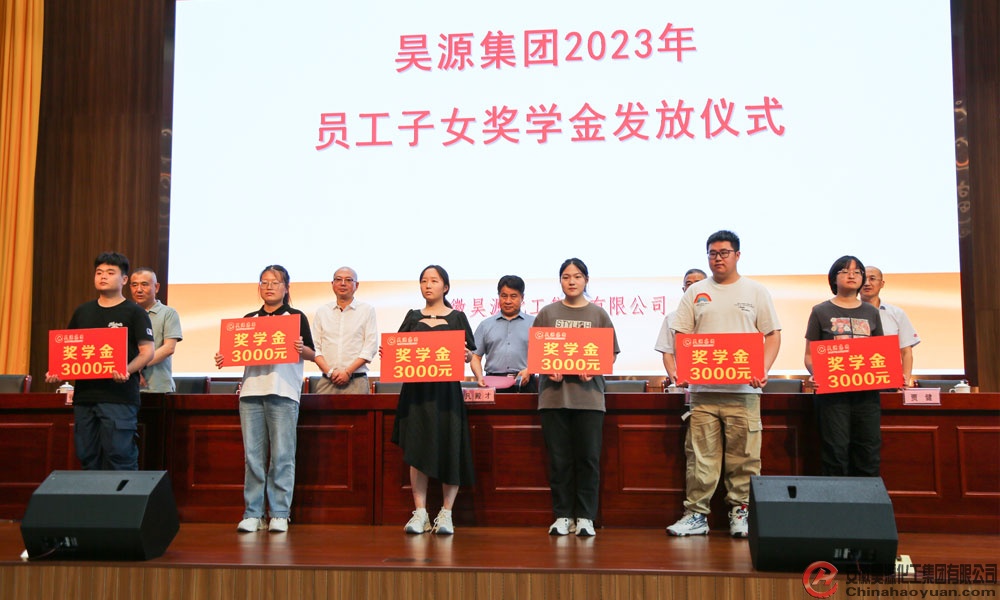 8月17日,昊源公司2023年員工子女獎(jiǎng)學(xué)金發(fā)放儀式在研發(fā)中心一樓報(bào)告廳隆重舉行。公司黨委書(shū)記、董事長(zhǎng)凡殿才、副總經(jīng)理田懷廣、張海生,友好合作單位阜陽(yáng)寶龍溫德姆至尊豪廷大酒店總經(jīng)理徐道建出席會(huì)議。