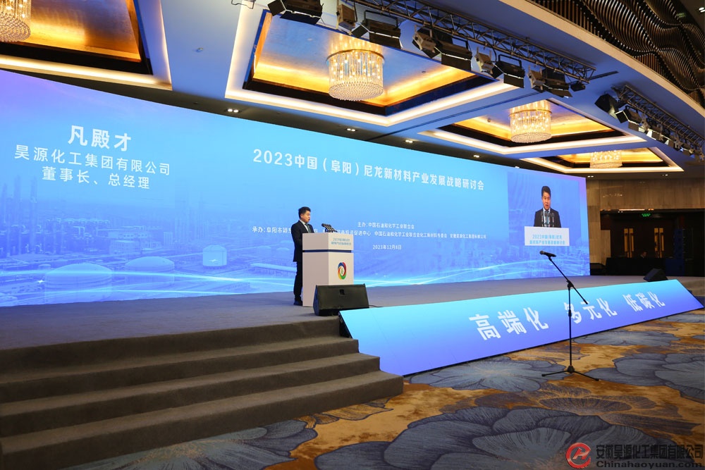 12月8日,由中國(guó)石油和化學(xué)工業(yè)聯(lián)合會(huì)主辦,阜陽(yáng)市潁東區(qū)人民政府、阜陽(yáng)市招商投資促進(jìn)中心、中國(guó)石油和化學(xué)工業(yè)聯(lián)合會(huì)專委會(huì)、安徽昊源化工集團(tuán)有限公司承辦的“2023中國(guó)(阜陽(yáng))尼龍新材料產(chǎn)業(yè)發(fā)展戰(zhàn)略研討會(huì)”在阜陽(yáng)天筑豪生大酒店舉行。昊源公司黨委書(shū)記、董事長(zhǎng)凡殿才出席會(huì)議并與會(huì)發(fā)言。