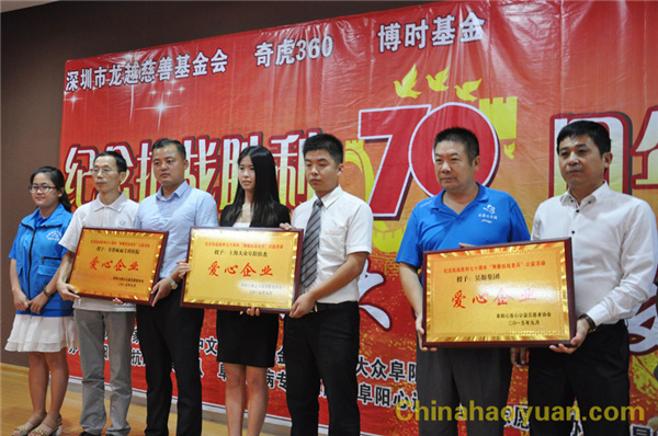 上午九時,在阜陽市疝病醫(yī)院的禮堂里,昊源集團榮獲“紀(jì)念抗戰(zhàn)勝利70周年致敬抗戰(zhàn)老兵”活動“愛心企業(yè)”稱號,昊源集團自七月份開始參與“關(guān)注歷史、關(guān)愛老兵”的活動以來,工會副主席戚偉組織昊源集團青年志愿者服務(wù)隊頂著高溫走訪二十多名抗戰(zhàn)老兵。為這些曾經(jīng)為祖國、為民族浴血奮戰(zhàn)的民族英雄送去了集團公司的最崇高敬意。