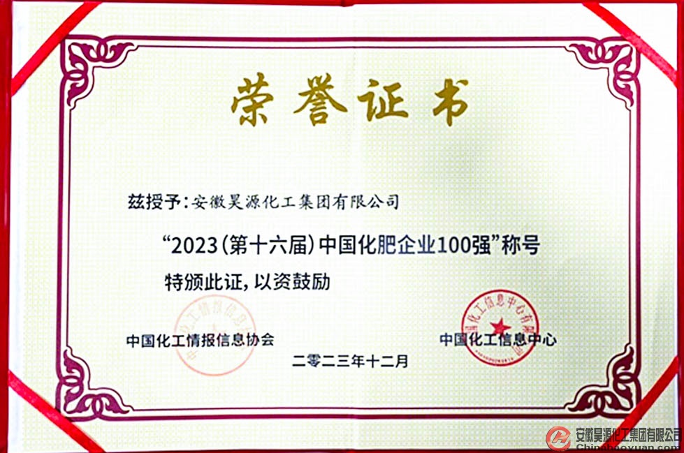 12月14日,由中國化工信息中心、中國化工情報信息協(xié)會、山東省泰安市人民政府聯(lián)合主辦的“2023第十六屆中國化肥百強評選發(fā)布暨中國化肥產(chǎn)業(yè)可持續(xù)發(fā)展高峰論壇”在山東泰安召開,會上正式發(fā)布了“2023中國化肥企業(yè)100強”名單,安徽昊源化工集團有限公司入選榜單。