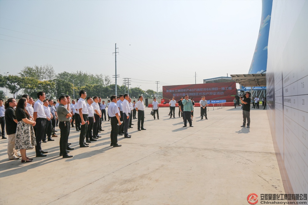 活動(dòng)期間,劉玉杰、胡明文等領(lǐng)導(dǎo)聽(tīng)取投產(chǎn)投運(yùn)項(xiàng)目情況介紹后,實(shí)地察看了昊源公司產(chǎn)40萬(wàn)噸尼龍66項(xiàng)目一期工程生產(chǎn)車(chē)間。