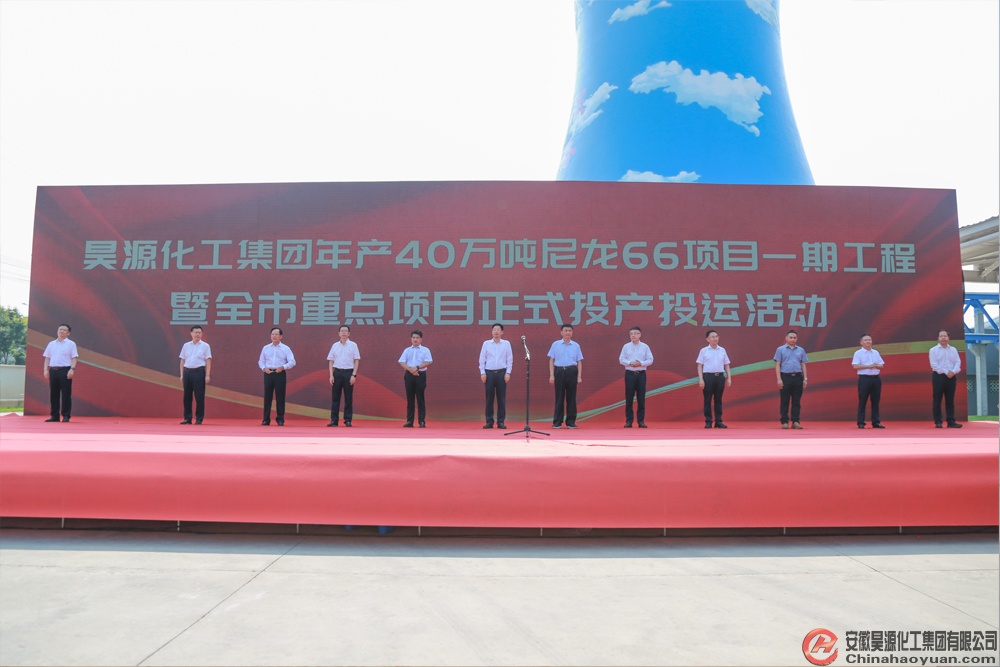 8月24日,安徽昊源化工集團(tuán)有限公司年產(chǎn)40萬(wàn)噸尼龍66一期工程等阜陽(yáng)市總投資201億元的46個(gè)重點(diǎn)項(xiàng)目正式投產(chǎn)投運(yùn),為阜陽(yáng)市產(chǎn)業(yè)結(jié)構(gòu)升級(jí)和經(jīng)濟(jì)發(fā)展再添新動(dòng)力。市委書(shū)記劉玉杰出席活動(dòng)并宣布項(xiàng)目投產(chǎn)投運(yùn),市委副書(shū)記、市長(zhǎng)胡明文講話(huà)。市領(lǐng)導(dǎo)李志偉、王波、鄭久坤、虞建斌、陳東,市政府秘書(shū)長(zhǎng)孫存坤參加。公司黨委書(shū)記、董事長(zhǎng)凡殿才會(huì)上發(fā)言。