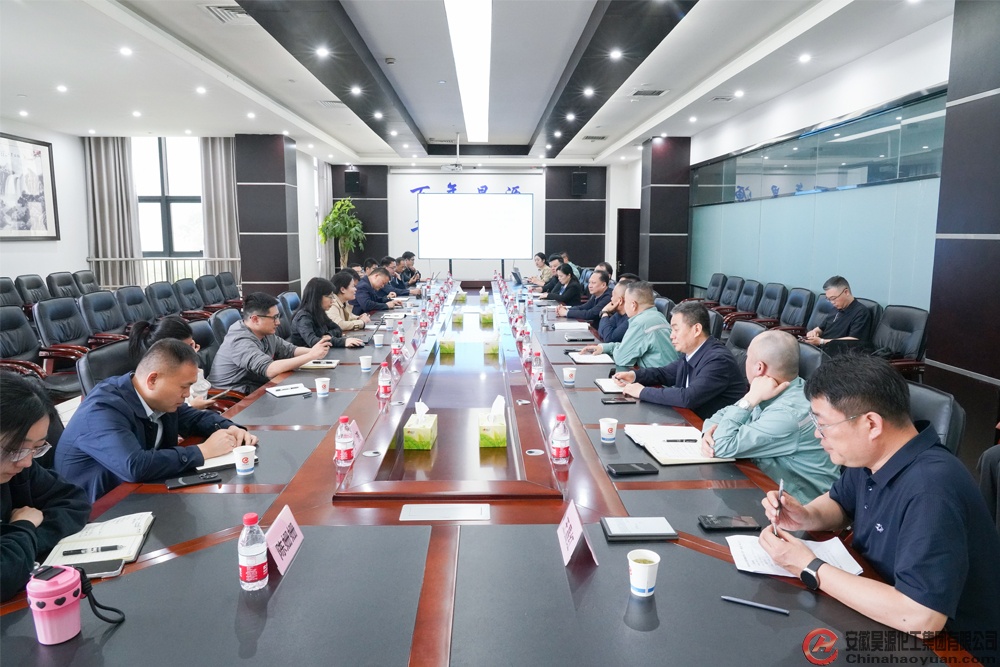 在園區(qū)會(huì)議室,朱啟峰介紹了潁東區(qū)在化工產(chǎn)業(yè)集群、能源基礎(chǔ)設(shè)施建設(shè)等方面的區(qū)位優(yōu)勢和發(fā)展?jié)摿Α?