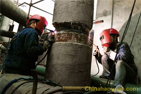 化機公司在接到公司的通知后高度重視,并在4月1日下午安排人員加班加點對需要更換管道進行預制、分布器提前制作鉆孔,并在下班前將檢修使用的電焊機、等離子等工具送到檢修指定地點接好試好,確保不影響第二天的正常的檢修工作.為了盡快完成本次檢修工作,化機公司合理安排人員共有7鉚、10焊人員參與本次檢修,在4月2日,化機分公司領導在班前會上,再次要求參與本次檢修人員要在確保安全質量的前提下,積極推進自己的工作進度為生產提前開車提前創(chuàng)造效益提供便利.經過參與檢修人員的通力配合,化機參與檢修的鉚焊人員用了4個小時時間,保質保量地完成了此次管道設備隱患消除工作,確保安全生產.