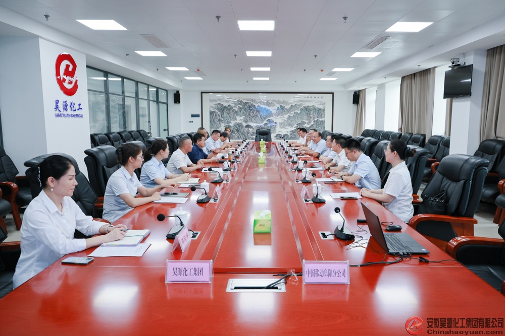 7月14日,中國移動阜陽分公司黨委書記、總經(jīng)理梅從軍一行蒞臨昊源公司座談交流,公司黨委書記、董事長凡殿才,副總經(jīng)理張海生、董事會秘書劉振亞陪同,公司相關部門負責人參加會議。