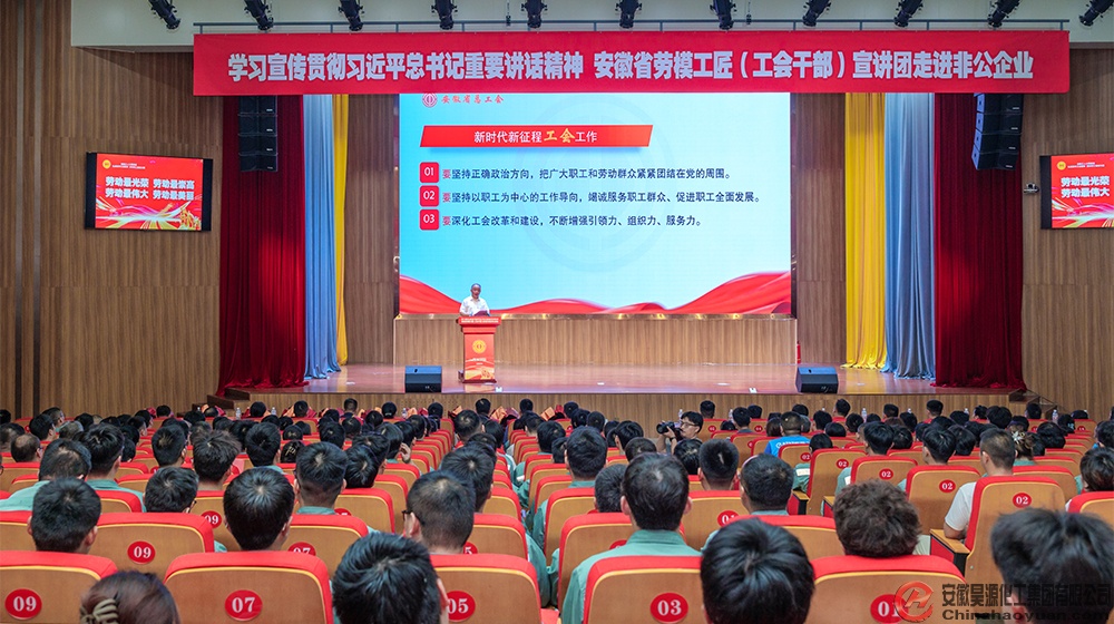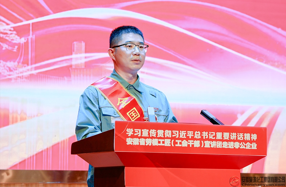 7月16日,學(xué)習(xí)宣傳貫徹習(xí)近平總書(shū)記重要講話(huà)精神安徽省勞模工匠(工會(huì)干部)宣講團(tuán)活動(dòng)走進(jìn)安徽昊源化工集團(tuán)有限公司,省總工會(huì)黨組書(shū)記、副主席徐發(fā)成以《奮斗百年路 啟航新征程》為題,圍繞學(xué)習(xí)宣傳貫徹習(xí)近平總書(shū)記在慶祝中華全國(guó)總工會(huì)成立100周年暨全國(guó)勞動(dòng)模范和先進(jìn)工作者表彰大會(huì)上的重要講話(huà)精神作主旨宣講。安徽省總工會(huì)黨組成員、副主席朱穎,阜陽(yáng)市人大常委會(huì)副主任、市總工會(huì)主席周擁軍,潁東區(qū)委書(shū)記趙群,昊源公司黨委書(shū)記、董事長(zhǎng)凡殿才出席活動(dòng)。