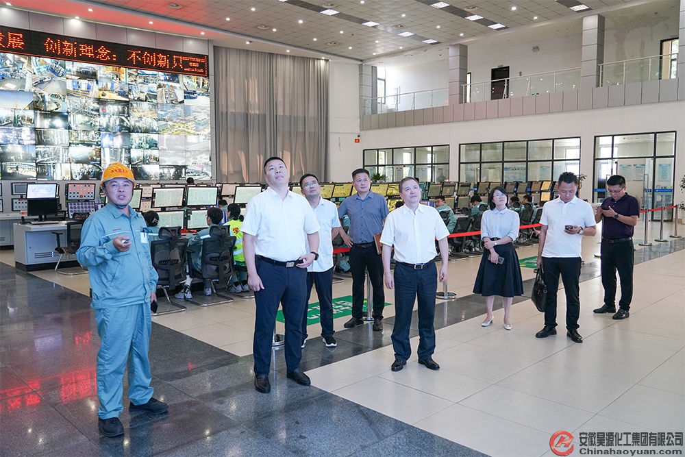 考察團一行深入園區(qū)生產(chǎn)一線,實地參觀生產(chǎn)裝置。在中心控制室,李超群介紹了昊源公司發(fā)展歷程、產(chǎn)業(yè)布局、項目建設(shè)、產(chǎn)品產(chǎn)能及未來規(guī)劃等情況。