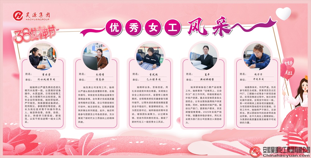 陽春三月,芳華綻彩。為熱烈慶祝國際“三八”婦女節(jié),進一步弘揚先進精神、樹立典型標桿,激發(fā)女員工干事創(chuàng)業(yè)熱情,昊源公司特從基層一線評選出十名“優(yōu)秀女工”并予以表彰。
