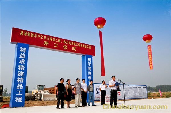 高明林在開工儀式上講話。他代表昊源集團(tuán)感謝阜陽市委、市政府及潁東區(qū)委、區(qū)政府對年產(chǎn)26萬噸苯乙烯和6萬噸環(huán)氧乙烷及配套項(xiàng)目的大力支持,從而保證了項(xiàng)目的快速推進(jìn)和及時(shí)開工。