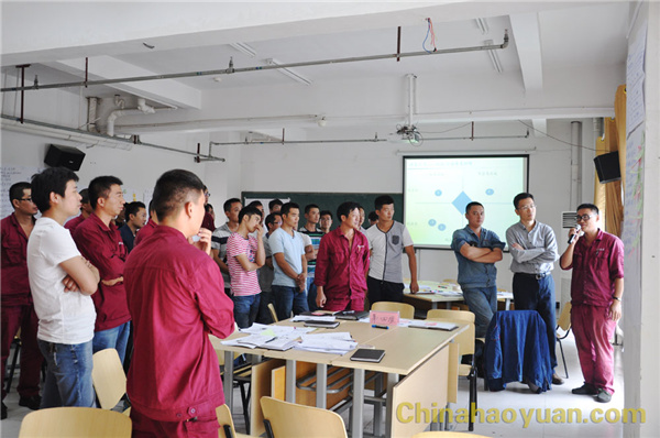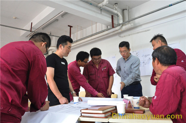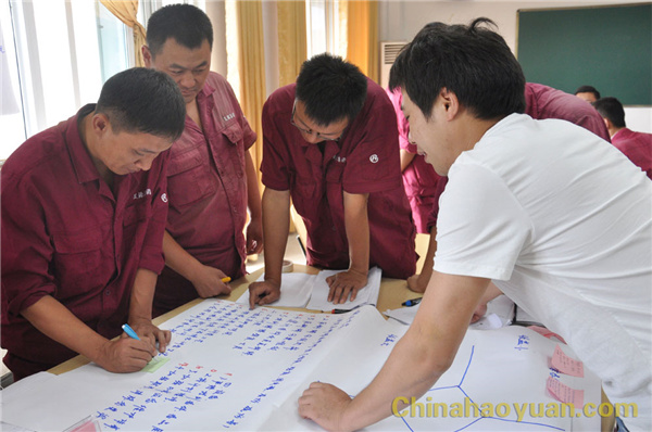 啟動儀式后,高松教授對造氣車間管理層、操作班員工、維修班員工及觀摩單位管理層進(jìn)行了行動學(xué)習(xí)培訓(xùn)。各小組選取“造氣車間如何降低頓氨消耗”為議題,分別展開討論。運(yùn)用行動學(xué)方法,制定小組目標(biāo)、找出存在問題、分析原因、為解決問題找方法,大家群策群力,獻(xiàn)言獻(xiàn)策。