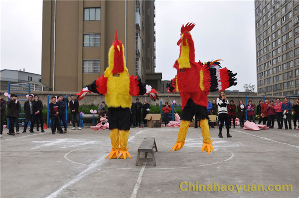 “雞”祥如意項目讓人難忘。幾位穿有提前精心準(zhǔn)備的卡通雞服裝的員工,隨著《雞叫進(jìn)行曲》的節(jié)奏翩翩起舞,時而拍拍雞翅膀、時而扭扭屁股,給觀眾們帶來趣味運(yùn)動歡樂,贏得了在場觀眾一陣陣熱烈的掌聲和喝彩??简瀳F(tuán)隊精神的夾氣球跑項目,需要每組六人相互協(xié)作,每個人雙手舉過頭頂,把氣球夾在胸前一起向前跑。多組隊員并排在起跑線上,裁判喊“開始”時,隊員相互配合向前跑,最先到達(dá)終點(diǎn)的隊獲勝,一個氣球掉落下來則全隊重新開始。該比賽中每隊的隊員都心連心、肩并肩,齊心協(xié)作到達(dá)終點(diǎn),正是對團(tuán)隊協(xié)作的最好詮釋。同時,在各項比賽間隙,都設(shè)有企業(yè)文化知識問答環(huán)節(jié),員工們在娛樂的同時,又鞏固了企業(yè)文化知識。