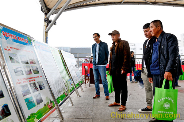 在昊源公司環(huán)保宣傳展臺(tái)前,市民或駐足觀看展板介紹,或向工作人員咨詢環(huán)境保護(hù)常識(shí)。