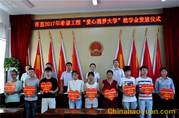 為讓農(nóng)村貧困家庭子女繼續(xù)深造、完成學(xué)業(yè),8月23日上午,昊源公司工會副主席戚偉、團(tuán)委書記朱梅陪同市直團(tuán)工委書記余彪,到潁泉區(qū)寧老莊鎮(zhèn)椿樹村扶貧點看望大學(xué)新生和學(xué)生家長,代表昊源公司出席市直2017年希望工程“愛心圓夢大學(xué)”助學(xué)金發(fā)放儀式。