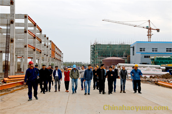 在昊源集團(tuán)阜陽煤基新材料產(chǎn)業(yè)園區(qū)項目建設(shè)現(xiàn)場,凡殿才向華東理工大學(xué)EMBA十一班精英介紹了園區(qū)項目建設(shè)情況,一起參觀了園區(qū)項目施工工地。