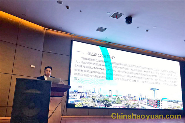 吳珍漢向與會代表介紹了昊源公司水資源應(yīng)用與管理情況。昊源公司作為淮河流域的化工企業(yè),秉承“綠色化工,美好生活”、“循環(huán)利用,節(jié)約資源”的理念,始終堅持清潔生產(chǎn)、綠色生產(chǎn),高度重視節(jié)能減排工作。對生產(chǎn)各單元外排水進行識別,通過清污分流、雨污分流,減少污水排放。根據(jù)水質(zhì)對生產(chǎn)用水進行分級使用,提高循環(huán)水濃縮比,節(jié)約原水。充分回收生產(chǎn)過程中的反應(yīng)熱量,減少循環(huán)水用量,降低煤耗,節(jié)約能源。