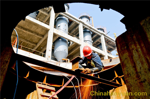 在鍋爐工段,施工人員正在忙著筑爐?!板仩t工段是園區(qū)項(xiàng)目開(kāi)車的重要工段,也是所有工段最先開(kāi)車的工段。因?yàn)?,只有鍋爐工段開(kāi)車正常,產(chǎn)生出合格的蒸汽后,其它工段才能進(jìn)行吹除、試壓、試漏、預(yù)熱管道、預(yù)熱設(shè)備。所以,鍋爐工段的正常運(yùn)行,直接影響到整個(gè)項(xiàng)目的試運(yùn)行?!睙崃ο到y(tǒng)負(fù)責(zé)人沈獻(xiàn)介紹說(shuō)。
