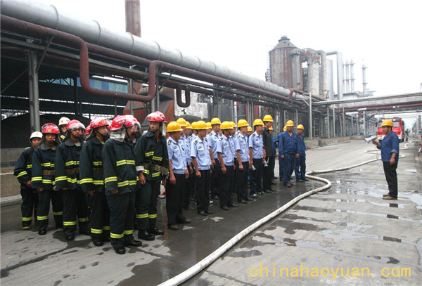 為全面落實(shí)貫徹全國第八個“安全生產(chǎn)月”的各項(xiàng)活動,更好落實(shí)“安全第一,預(yù)防為主,綜合治理”的安全生產(chǎn)方針,有效保護(hù)員工健康及公司利益,最大限度降低事故危害程度,同時為進(jìn)一步檢驗(yàn)員工和應(yīng)急救援隊(duì)伍在處理突發(fā)事件時的快速反應(yīng)能力,鍛煉各部門在處理突發(fā)事故的協(xié)同作戰(zhàn)能力,提升職工緊急情況下靈活運(yùn)用各類防護(hù)器材實(shí)施人員自救、互救、協(xié)調(diào)疏散等綜合救護(hù)能力,使公司安全管理水平再上新上臺階,公司于2009年6月29日下午10時20分,在重大危險(xiǎn)源2#半水煤氣柜舉行了一次煤氣泄漏、發(fā)生火災(zāi)及人員受傷,實(shí)施緊急救援的應(yīng)急救援演練。