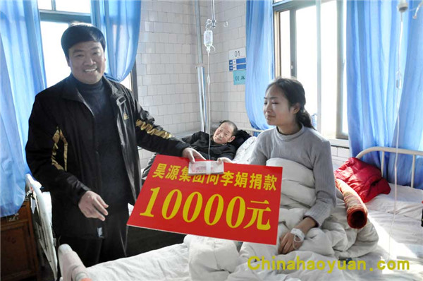 2010年2月23日,昊源集團(tuán)工會(huì)副主席王振海來(lái)到阜陽(yáng)市第二人民醫(yī)院為身患骨髓增生異常綜合癥(為白血病前期綜合癥)的李娟送上一萬(wàn)元慰問金,以表達(dá)昊源集團(tuán)的一片愛心。