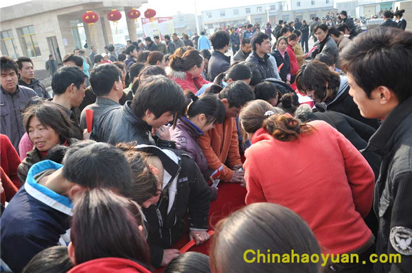 安徽昊源天泉塑業(yè)公司總經(jīng)理田懷廣介紹:“項(xiàng)目目前需要大量的農(nóng)民工,一期工程就需要300名農(nóng)民工,如果二期投產(chǎn)后,還需要500名農(nóng)民工。”在廠方的組織下前來應(yīng)聘的農(nóng)民工參觀了廠區(qū)、廠貌、生產(chǎn)車間和生產(chǎn)現(xiàn)場(chǎng),讓企業(yè)與應(yīng)聘者有更充分的交流與選擇平臺(tái),招聘洽談會(huì)得到了廣大農(nóng)民工和其他求職者的積極響應(yīng),當(dāng)天就有256名農(nóng)民工與其他求職者與企業(yè)簽訂了意向協(xié)議,并有28名求職者現(xiàn)場(chǎng)與企業(yè)簽署了勞動(dòng)合同,招聘洽談會(huì)取得了圓滿成功。 (工會(huì) 溫玉丹)