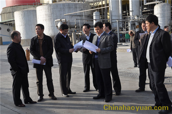 代表團(tuán)一行深入生產(chǎn)一線進(jìn)行了實(shí)地考察。公司總經(jīng)理劉博向代表團(tuán)詳細(xì)的匯報(bào)了我公司近幾年的發(fā)展?fàn)顩r。他說,昊源集團(tuán)近幾年的發(fā)展主要得益于市委、市政府的堅(jiān)強(qiáng)領(lǐng)導(dǎo)和大力支持,目前,我公司在安徽化工行業(yè)中處于龍頭地位,在全國(guó)同行業(yè)中處于前20強(qiáng)。我們以市場(chǎng)為導(dǎo)向,緊緊抓住發(fā)展這一條主線,突出節(jié)能降耗、安全、環(huán)保三大主題,發(fā)展低碳經(jīng)濟(jì),走可持續(xù)發(fā)展道路;目前,總投資36億元的航天爐項(xiàng)目、界首“12.20”搬遷項(xiàng)目、昊源新天的雙氧水項(xiàng)目、昊源天泉塑業(yè)擴(kuò)建等項(xiàng)目都在緊張的施工建設(shè)當(dāng)中,這些項(xiàng)目的投運(yùn),將給昊源的發(fā)展投入新的活力。預(yù)計(jì)在“十二五”末,我公司將形成銷售收入80億元以上的規(guī)模。