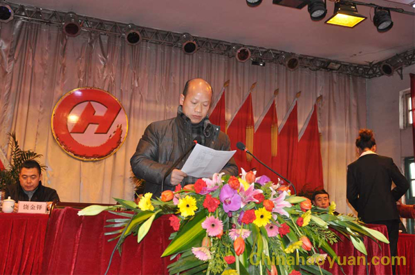 下午3:00,雄壯的國歌響徹整個會場。黨委副書記李繼忠宣布:“昊源集團2010年度總結(jié)表彰大會正式開幕”。在熱情洋溢的氣氛中,公司黨委書記、董事長饒金鐸作了題為“ 準確把握形勢、搶抓發(fā)展機遇、堅定不移推進科學(xué)發(fā)展、努力實現(xiàn)企業(yè)奮斗目標”的報告。報告主要分為三部分,一是對2010年的工作進行全面的總結(jié)和回顧。2010年是公司面對諸多困難攻堅克難的一年,也是公司降成本、調(diào)結(jié)構(gòu)、大干快上的一年。面對嚴峻的挑戰(zhàn),全體干部員工團結(jié)一心,變壓力為動力,積極應(yīng)對、最大限度地降低生產(chǎn)成本,采取行之有效的措施保證了全年生產(chǎn)經(jīng)營形勢穩(wěn)健、較快發(fā)展,全年共生產(chǎn)總氨93.16萬噸,實現(xiàn)產(chǎn)值30多億元。二是“十一五”取得的成就和“十二五”發(fā)展規(guī)劃。在“十一五”期間,為進一步做大做強企業(yè),公司通過尋求戰(zhàn)略合作伙伴,成功實現(xiàn)了與晉煤集團的合資合作;在繼2007年全資收購界首化肥廠之后,又分別以51%的股權(quán)控股阜南新天、紹興化工和天泉塑業(yè)公司,使集團公司實現(xiàn)了突飛猛進的發(fā)展。“十二五”期間,是我公司實現(xiàn)跨越式發(fā)展的關(guān)鍵時期,我們必須牢固樹立機遇意識和憂患意識,科學(xué)決策、大力推進企業(yè)快速、健康發(fā)展,努力實現(xiàn)百億規(guī)模、百年昊源新目標。三是2011年工作打算。董事長饒金鐸從十個方面對工作進行了詳細的規(guī)劃安排。最后,他說:艱辛鑄就偉業(yè),奮斗創(chuàng)造輝煌。讓我們凝聚起全體昊源人的智慧和力量,充分發(fā)揮昊源人敢為人先的拼搏精神,為實現(xiàn)“十二五”良好開局而努力奮斗!