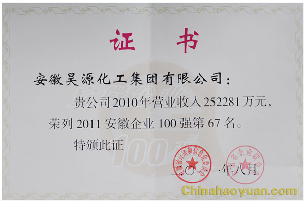 由安徽省經(jīng)信委、安徽省企業(yè)聯(lián)合會(huì)主辦的“2011安徽企業(yè)100強(qiáng)”評(píng)審組委會(huì)傳來捷報(bào),我公司榮列“2011年安徽企業(yè)100強(qiáng)”第67名。