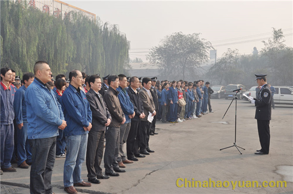 隨著雄壯的國歌聲響起,在經(jīng)警隊旗手的護送下,五星紅旗冉冉升起。公司黨委副書記李繼忠作軍訓(xùn)總動員講話。他說,軍訓(xùn)月活動是昊源集團企業(yè)文化建設(shè)的重要組成部分,也是提高員工隊伍素質(zhì),培養(yǎng)全員協(xié)調(diào)一致,共同向上和展現(xiàn)企業(yè)員工精神風貌的重要體現(xiàn)。同時,軍訓(xùn)也是一種學(xué)習,也是一種磨練和考驗。希望全體干部員工充分準備、以飽滿的熱情、頑強的毅力和旺盛的斗志參加軍訓(xùn),同時,他還對參加軍訓(xùn)的員工提出具體要求,希望參加軍訓(xùn)的員工都能以優(yōu)異成績完成本次軍訓(xùn)任務(wù)。
