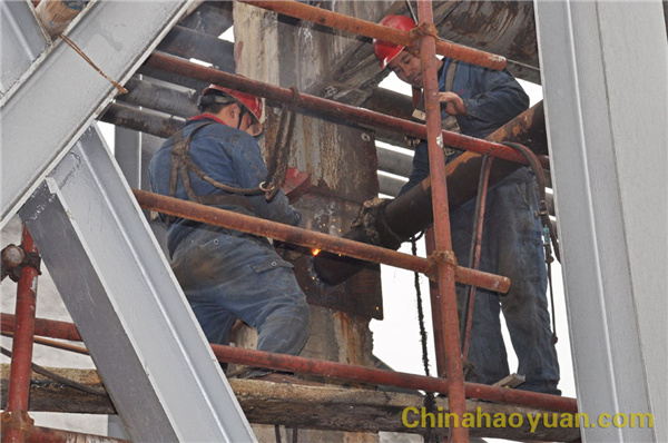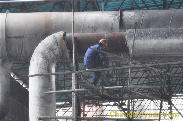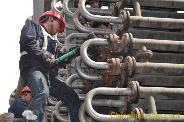 ③、維修人員在為設(shè)備加固。 ④、維修人員在疏通循環(huán)水管道。