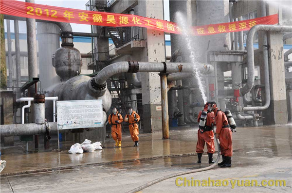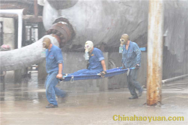 此次演練得到市安監(jiān)局的大力支持。市安監(jiān)局局長李哲、副局長汪金城在公司副總經(jīng)理凡殿才的陪同下,蒞臨現(xiàn)場觀摩、指導(dǎo)反事故應(yīng)急救援演練。此次反事故應(yīng)急救援演練方案為2米合成高壓氣體泄漏。