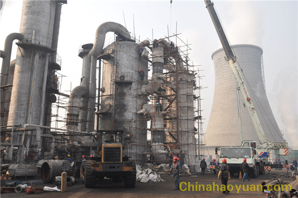此次4#變換工藝整改,是將原來的中低變工藝徹底轉(zhuǎn)變?nèi)妥兞鞒獭榇_保項目安全順利的實(shí)施,公司專門成立了技術(shù)攻關(guān)指揮小組,進(jìn)行現(xiàn)場指導(dǎo)作業(yè)。根據(jù)現(xiàn)有設(shè)備的流程情況,技術(shù)組人員通過現(xiàn)場觀察測量,并經(jīng)詳細(xì)計算和論證后制定了詳細(xì)的、完整的技改方案。采取將原有中變爐改為全低變的一、二段,段間增設(shè)增濕器,實(shí) 施增濕器噴水取代煤氣冷激,同時對原飽和塔、主熱交和水調(diào)溫器等設(shè)備進(jìn)行改造,有效提高了其傳質(zhì)傳熱效率。此次改造充分利用了原有的設(shè)備,實(shí)現(xiàn)公司提出的用時短、方案優(yōu)、投資省的要求。此次變換改造方案順利的實(shí)施,無不體現(xiàn)出昊源人的智慧和力量。