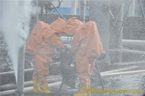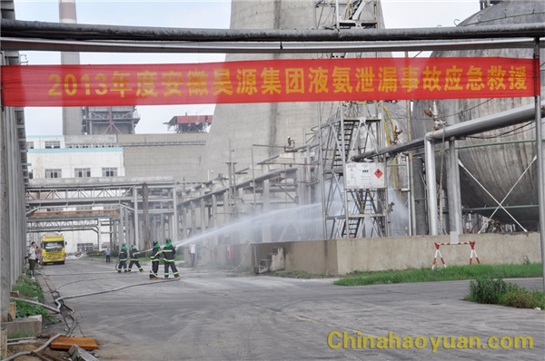 2013年6月25日下午,昊源公司“液氨泄漏反事故應急救援演練”在公司液氨儲罐區(qū)進行。此次液氨泄漏反事故應急救援演練是“安全月”期間的一項重要內容,受到上級相關部門及公司領導的高度重視。阜陽市安監(jiān)局、質監(jiān)局、環(huán)保監(jiān)測站及潁東公安、消防部門等單位主要領導親臨演練現(xiàn)場觀摩指導演練。演練分三個步驟進行:一是事故發(fā)生后現(xiàn)場充氨車輛的應急撤離和洗消;二是2米合成裝置停車保壓,停止放氨,相應壓縮機停機切氣,相關合成氨系統(tǒng)進行負荷應急調整;三是泄漏事故部位緊急卸壓、洗消稀釋、消除漏點、污水回收。