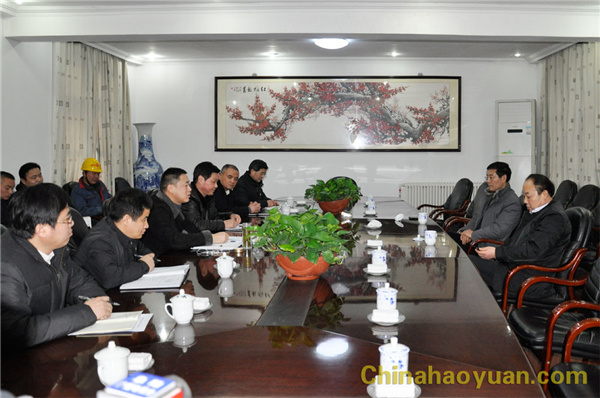 在公司會議室,鄭高潮首先對李平市長一行來昊源公司慰問技術(shù)人員表示衷心感謝。他說,市領(lǐng)導(dǎo)百忙之中專程來公司慰問技術(shù)人員,充分說明市委市政府高度重視知識和人才,廣大技術(shù)人員和職工內(nèi)心受到極大鼓舞和振奮。近年來,企業(yè)高度重視技術(shù)人才隊伍建設(shè),不斷加大科技投入,積極開展改革創(chuàng)新。公司在2013年克服各種外部不利因素影響,通過全體員工共同的努力,堅持技術(shù)改革、產(chǎn)品創(chuàng)新和團(tuán)隊建設(shè),取得了良好的經(jīng)濟(jì)效益和社會影響,在同行業(yè)保持較為領(lǐng)先的優(yōu)勢。鄭高潮還向市領(lǐng)導(dǎo)一行匯報了企業(yè)未來的發(fā)展規(guī)劃,并表示企業(yè)將積極推進(jìn)煤基工業(yè)園區(qū)的新項(xiàng)目建設(shè)和航天爐二期項(xiàng)目建設(shè),將不斷開發(fā)新產(chǎn)品、拓展新市場、開創(chuàng)新領(lǐng)域。